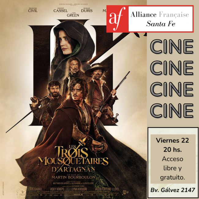 🎬El próximo viernes 22 de marzo, a las 20 horas, proyectaremos el film «Les Trois Mousquetaires: D’Artagnan» 2023, Francia, de Martin Bourboulon, 121 min. Sinopsis: D’Artagnan, es dado por muerto después de intentar salvar a una joven de ser secuestrada. Una vez llegado a París, intenta por todos los medios encontrar a sus atacantes, pero…