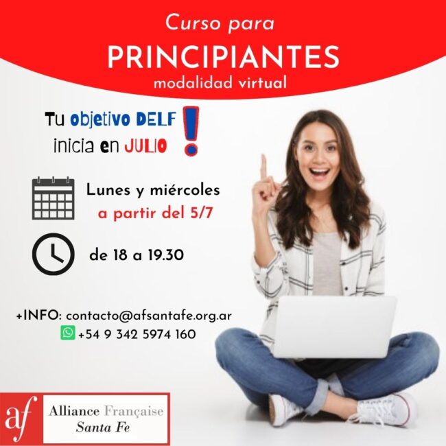 A partir del viernes 6 de agosto, la institución da comienzo a una nueva comisión de PREPARACIÓN DELF A2, con objetivo examen en noviembre. Modalidad virtual de un encuentro por semana. Inscripciones ABIERTAS – contacto@afsantafe.org.ar / 54 9 342 5974 160.