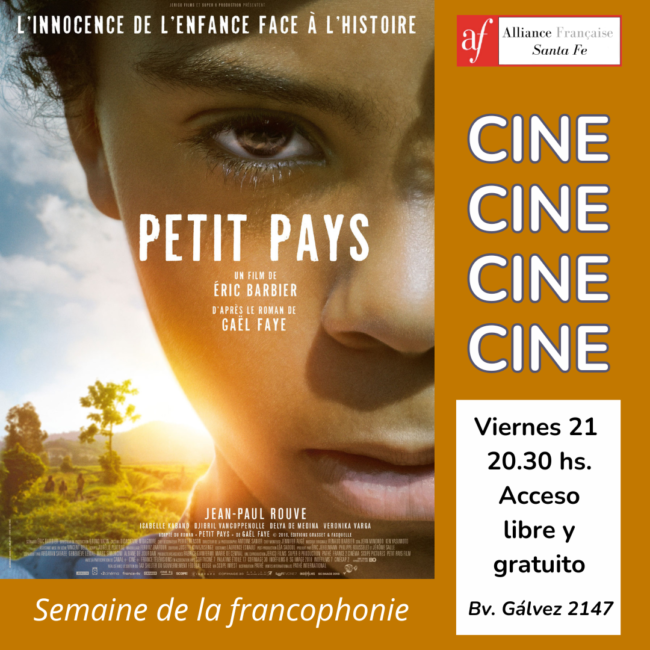 🎬 El próximo viernes 21 de marzo, a las 20.30 horas, proyectaremos el film «Petit pays», 2020, Francia & Bélgica, de E. Barbier, 107m. 👉 Sinopsis: Gabriel tiene 10 años y vive en un cómodo vecindario de expatriados en Burundi, su «pequeño país». Gabriel es un niño normal, feliz y despreocupado, que vive aventuras cotidianas…