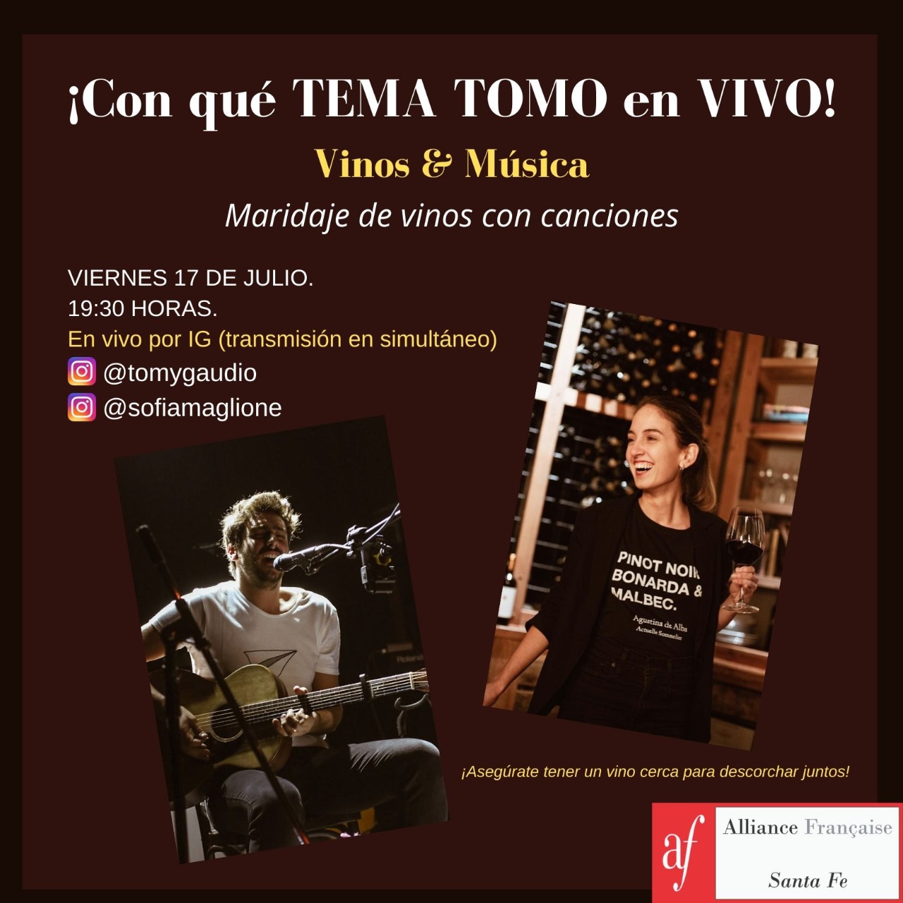 Cata de vinos a cargo de Tomás Gaudio y Sofía Maglione. La actividad será transmitida por las cuentas de Instagram indicadas.