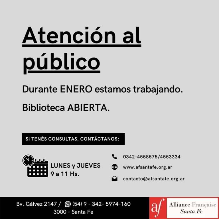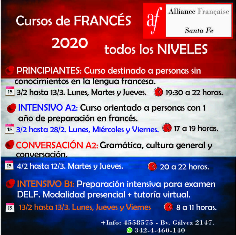 La Alianza Francesa Santa Fe informa a la Comunidad que se encuentran abiertas las inscripciones para el ciclo de cursos…