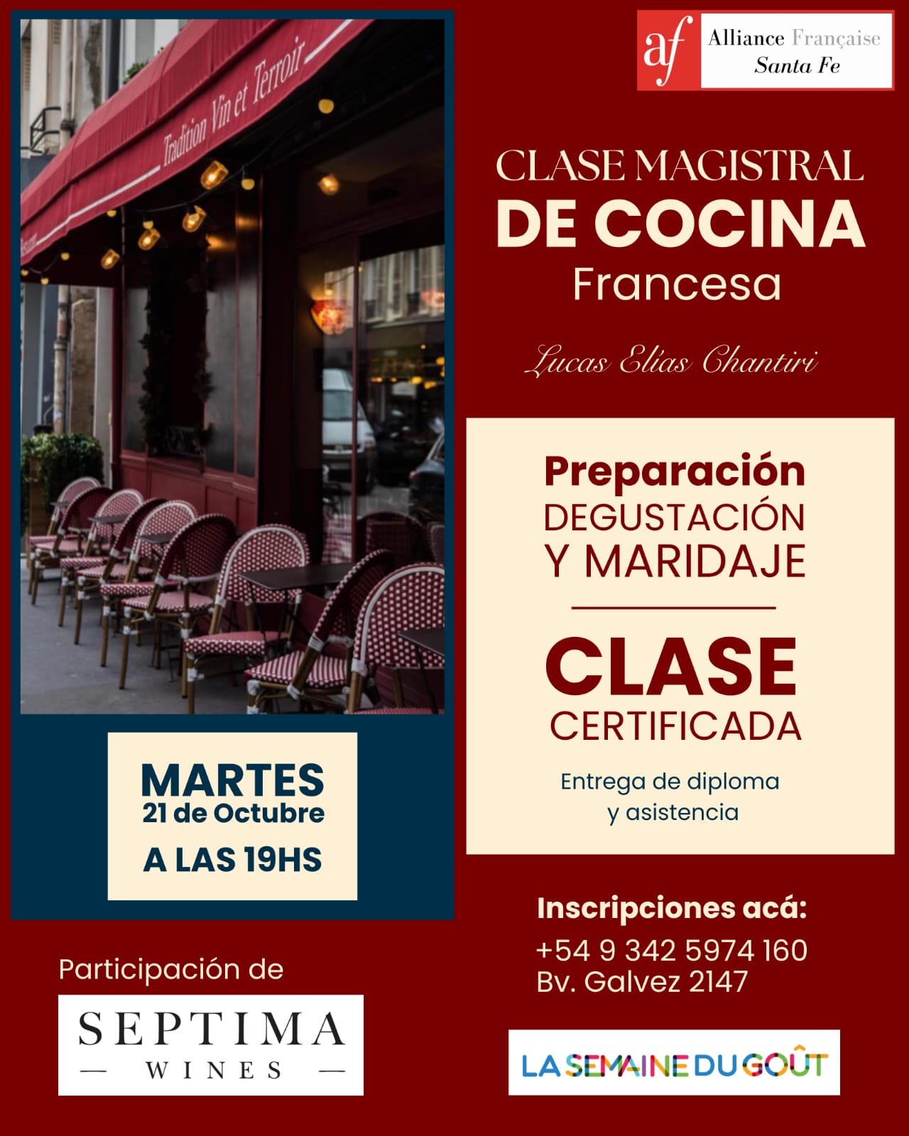 ✍️ Inscripciones ABIERTAS a la clase magistral de cocina francesa a cargo del Chef Lucas Chantiri.