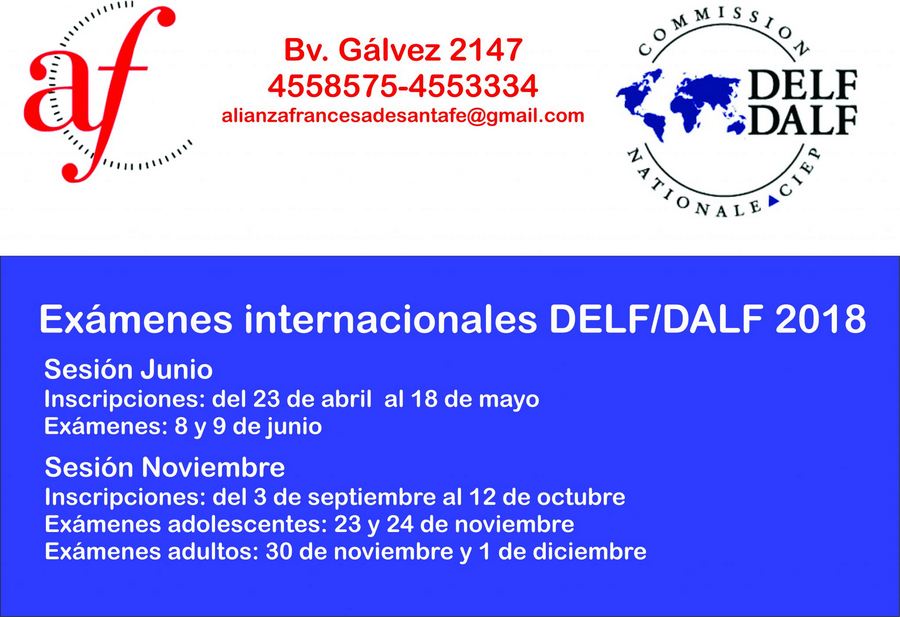 La AFSF es el único centro examinador de la ciudad para los exámenes internacionales DELF-DALF, con preparación específica para todas las unidades.